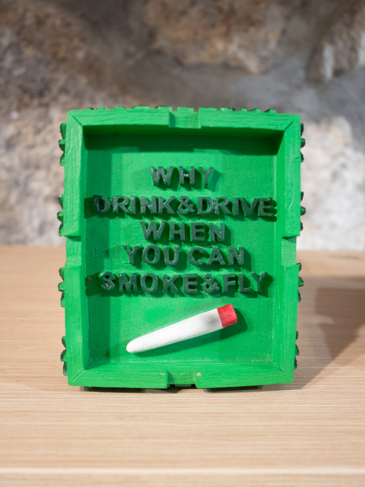 “Why drink & drive when you can smoke & fly”, tornando-o uma peça original e divertida para qualquer espaço.